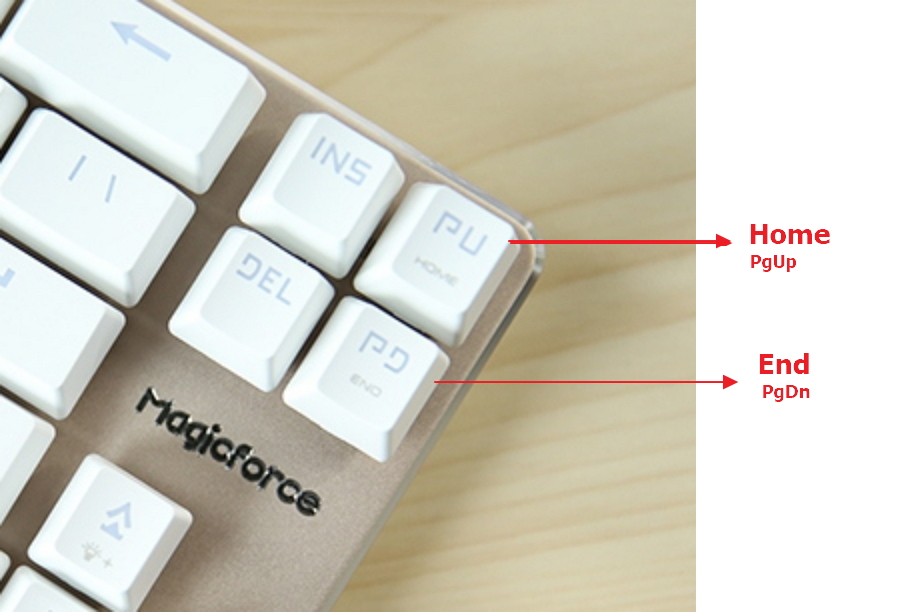 对魔蛋68的PgUp、PgDn,改为Home、End。(刚好把按Fn和不按Fn的键值反一下)
