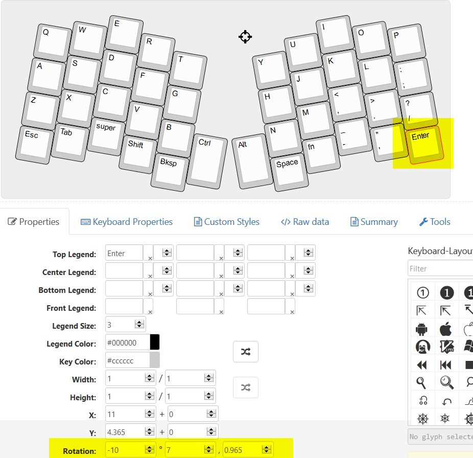 推荐这个网站 www.keyboard-layout-editor.com ,可以自己设计键盘布局、设计键的颜色、印刷的文字和图标等。