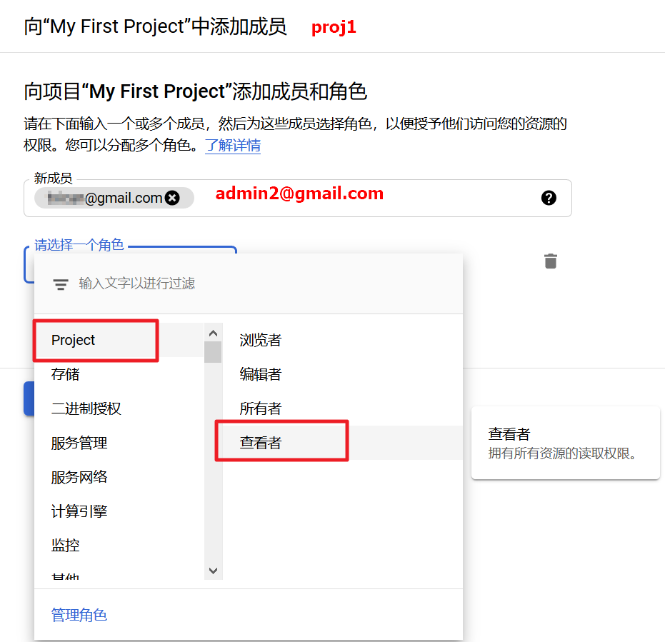proj1的管理员是admin1,proj2的管理员是admin2。