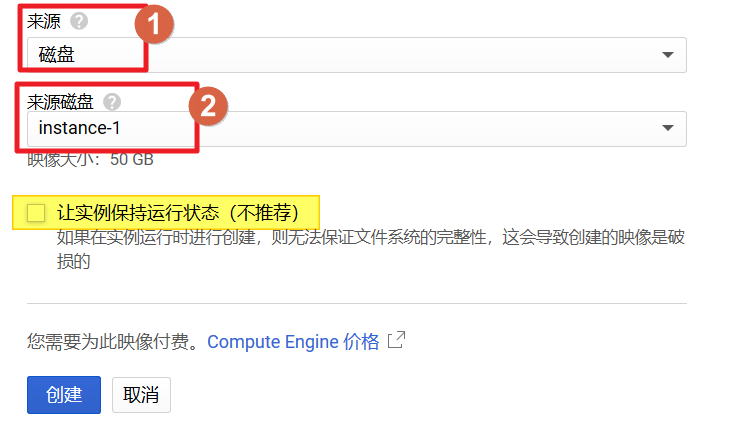 创建过程会使实例停止。不推荐在实例运行过程中创建映像。
