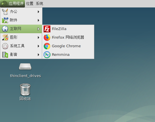 等一会儿就登录Linux的桌面了。左上角“应用程序”就能找到常用程序,这是一键脚本安装的。