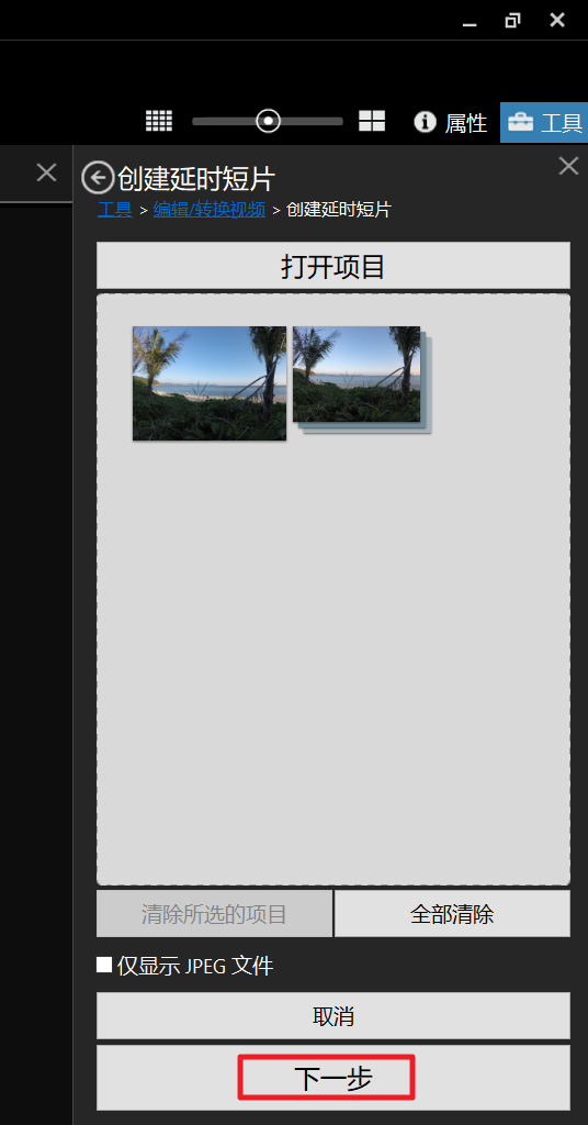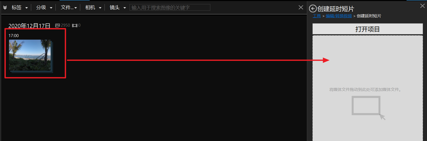 4. 将一组或多组照片拖动至延时短片项目下一步