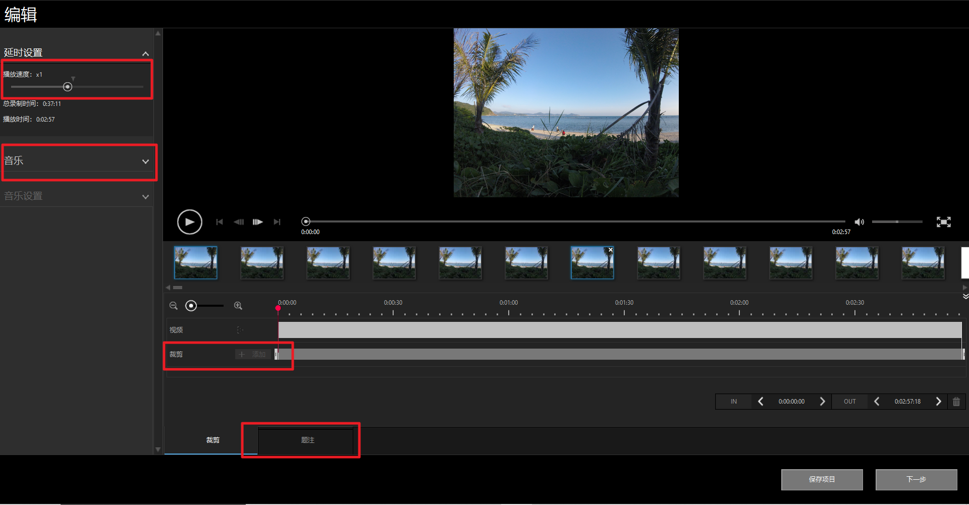 5. 播放速度、背景音乐、裁剪视频总长度、添加文字
