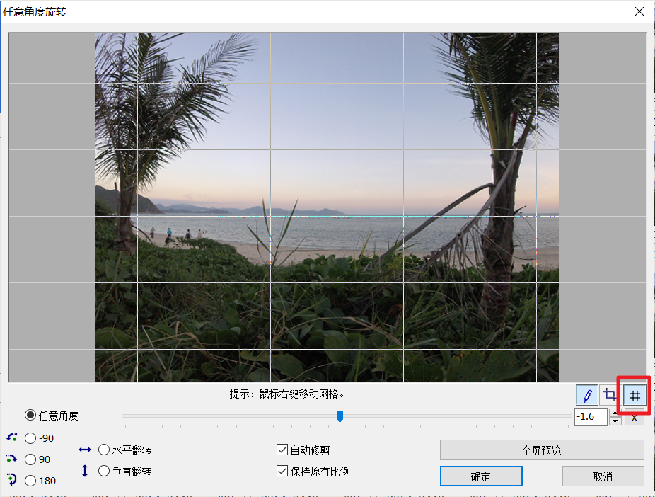FastStone Image Viewer任意角度旋转图片 查看相关主题: 佳软 照片 拍摄风光照片的时候,如果地平线不水平,会影响观感。市面上有很多图片编辑工具,使用起来感受各不相同。我个人觉得目前最好的工具是……1. FastStone Image Viewerhttps://www.faststone.org/FSIVDownload.htm2. 任意角度旋转工具3. 可以画出水平线参考线或者垂直参考线4. 也可以使用网络线辅助判断是否已经水平或垂直* 按住右键,可以拖动网络线,更方便确认。 评论