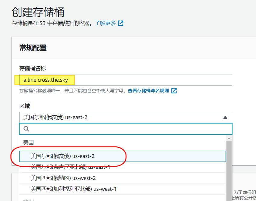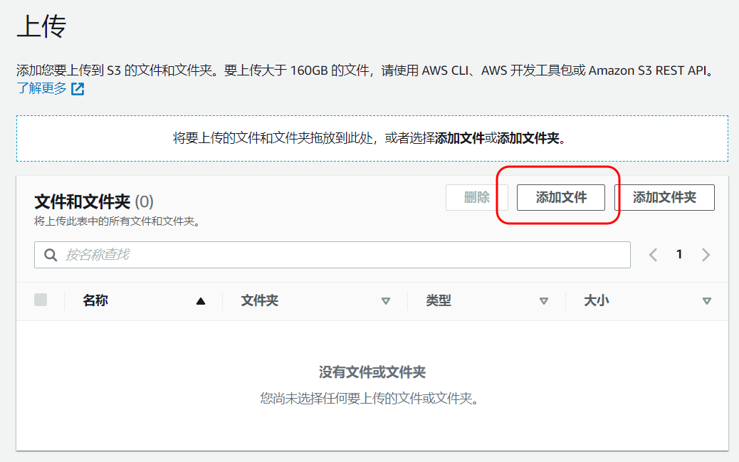 注意选择区域与Amazon Transcribe服务一致滚到页面底部,“创建存储桶”接下来上传文件有两种方法:一、直接在Web页面上传
