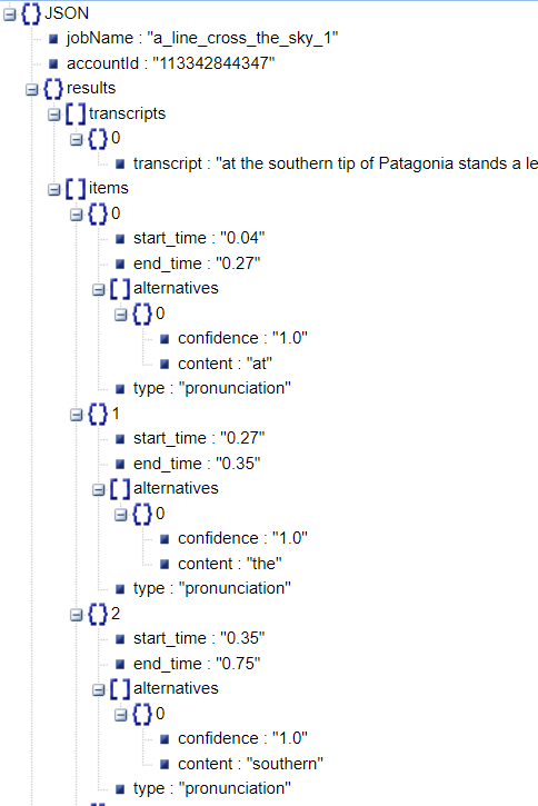 到目前为止,得到的.json文件还不是字幕文件。它的结构是下面这个样子的。