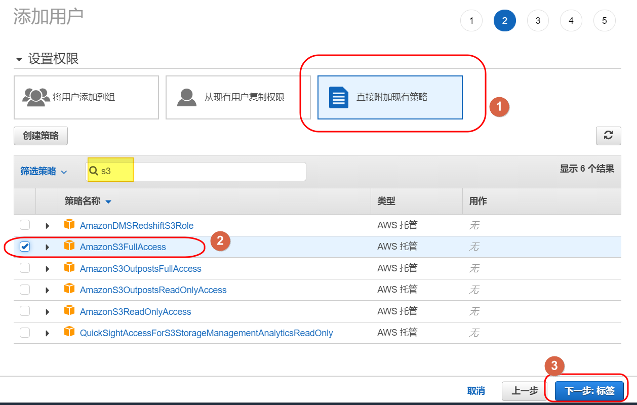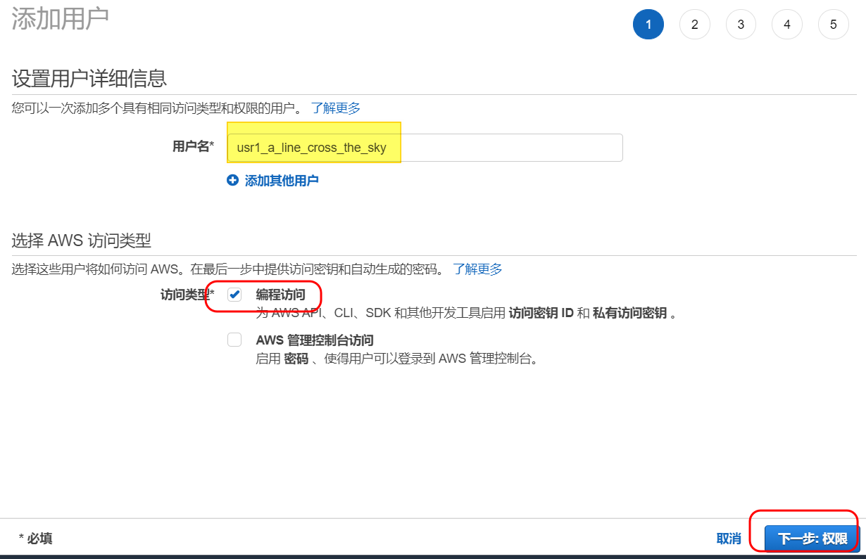 一路“下一步”到用户创建成功,页面不要关了,马上查看私有访问密钥。(这个页面关了就再也看不到私钥了)AWS CLI 命令行认证权限