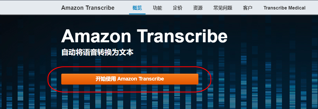 在Amazon Transcribe页面右上角,确认一下当前区域。