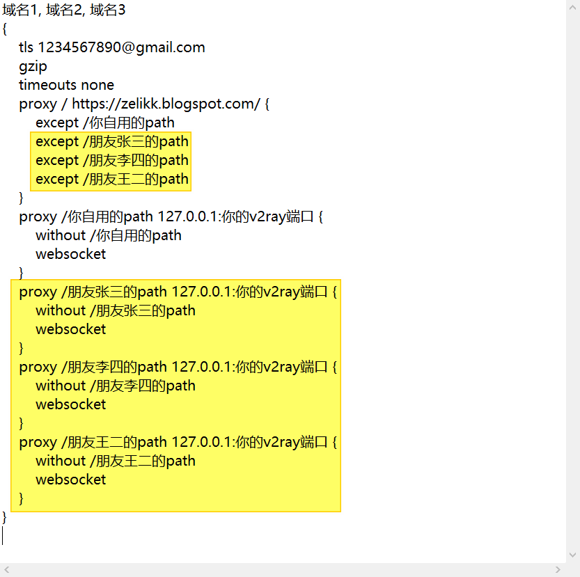 当我们把v2ray梯子分享给朋友使用时,一是怕朋友分享给朋友的朋友,二是怕用得多了被运营商临时屏蔽或限流。我们可以使用多域名+多路径达到多用户使用的目的。
