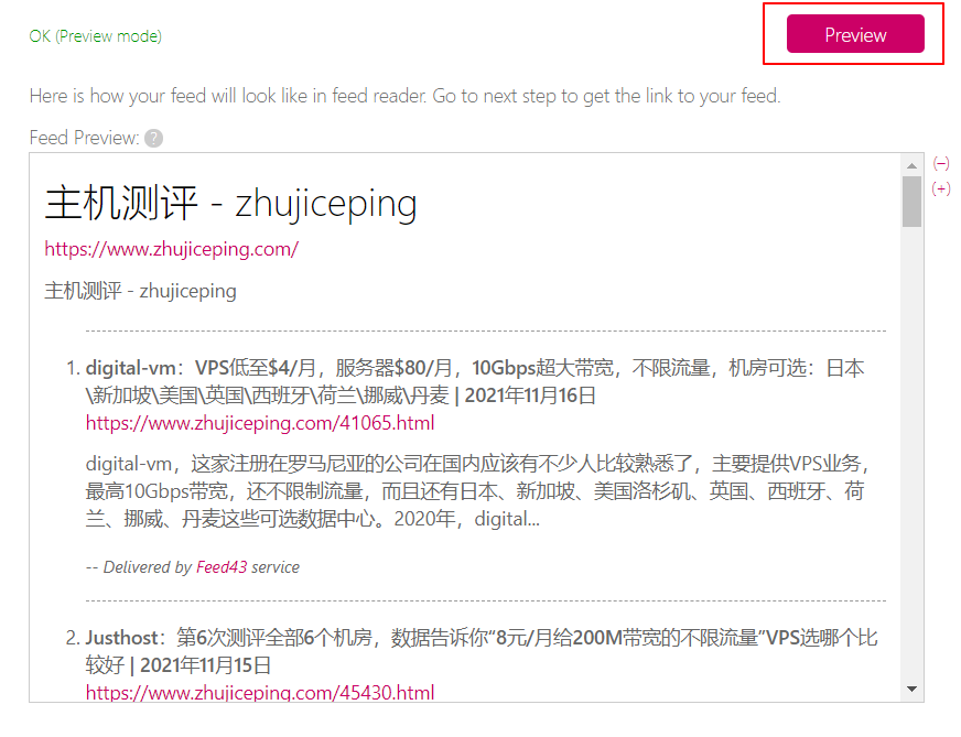 用Feed43制作国外主机测评zhujiceping的RSS