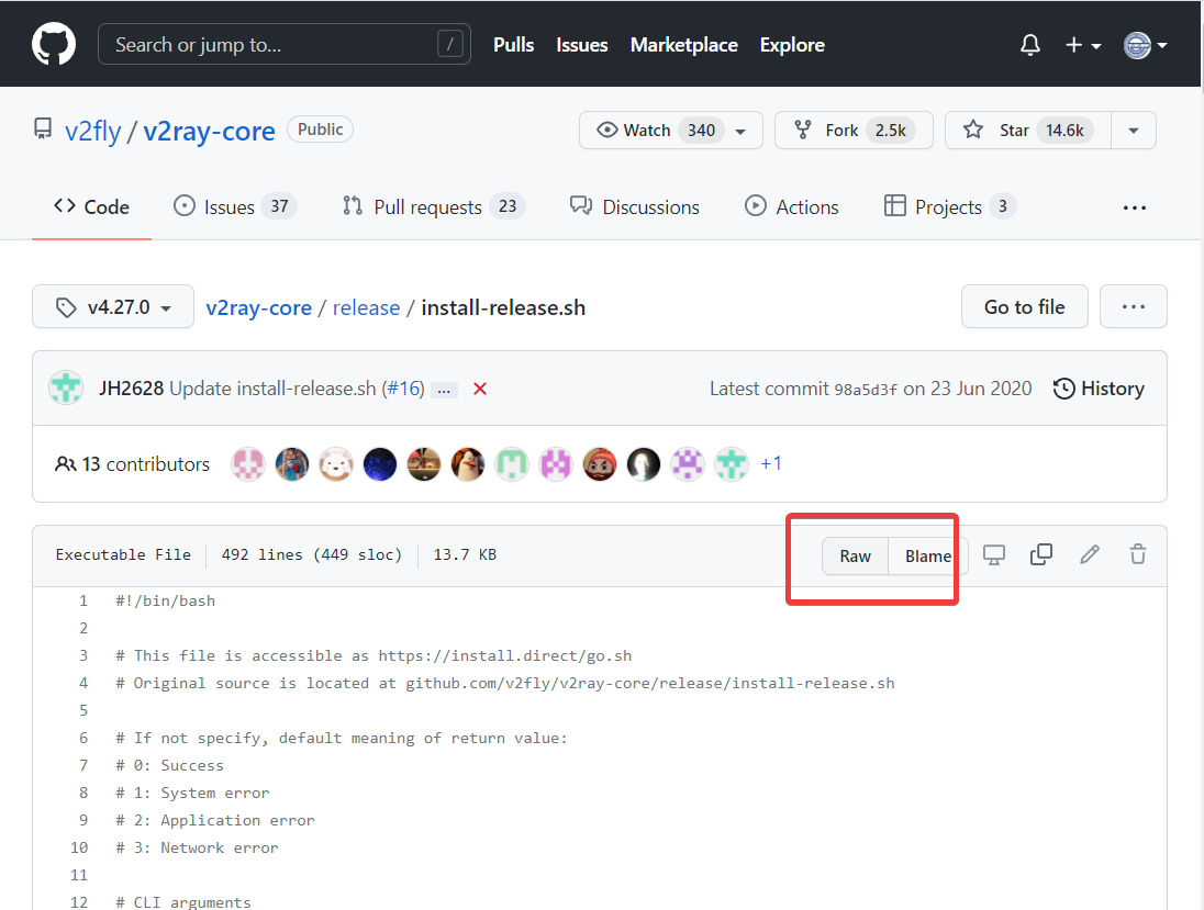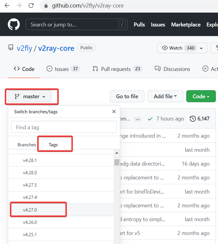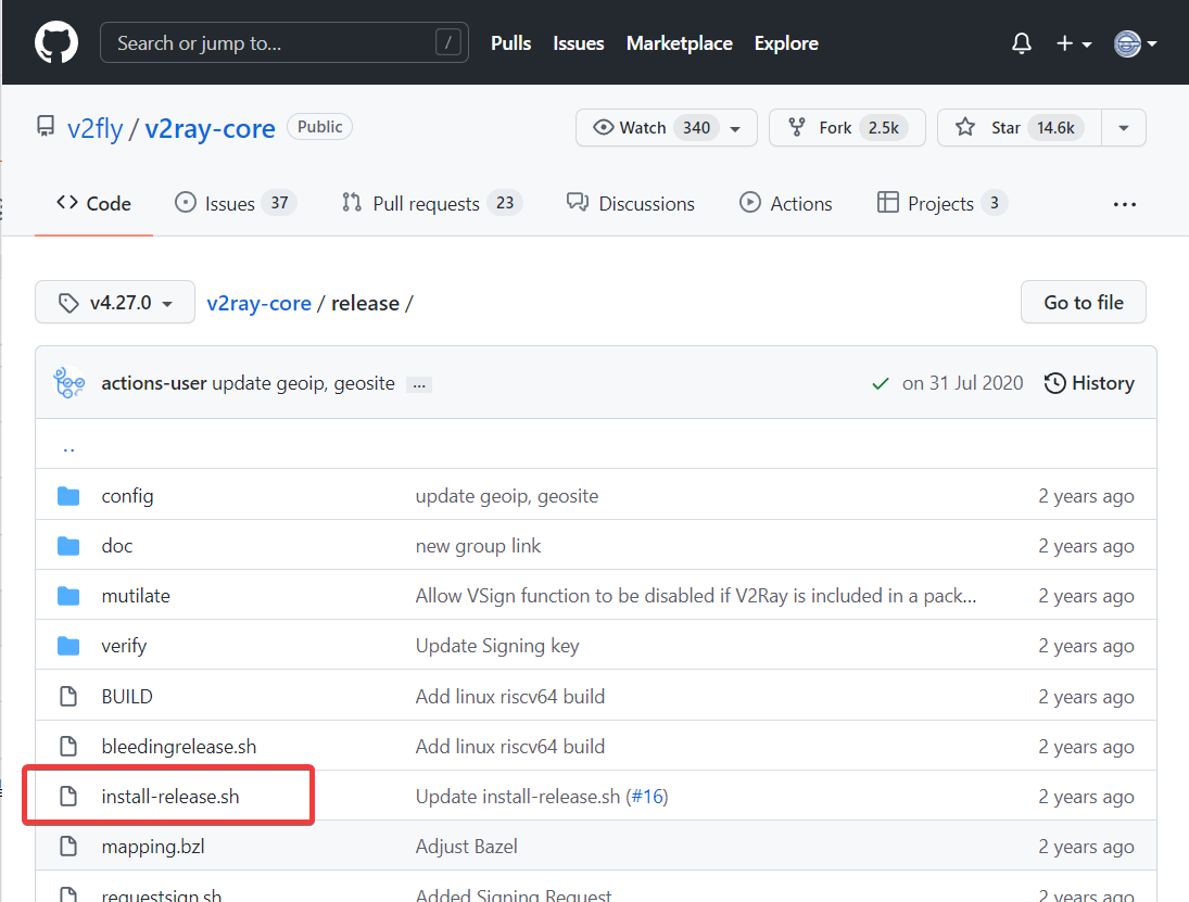 于是我需要GitHub 上的旧版本官方脚本安装旧版本的软件(用 V2ray V4.27.0 的官方脚本安装 V2ray V4.27.0)