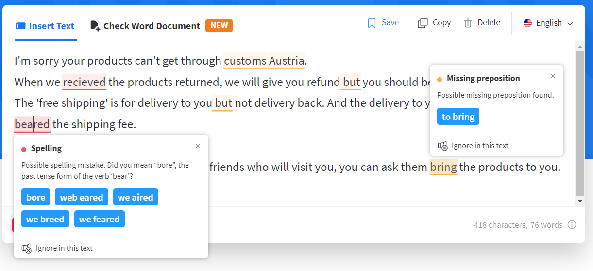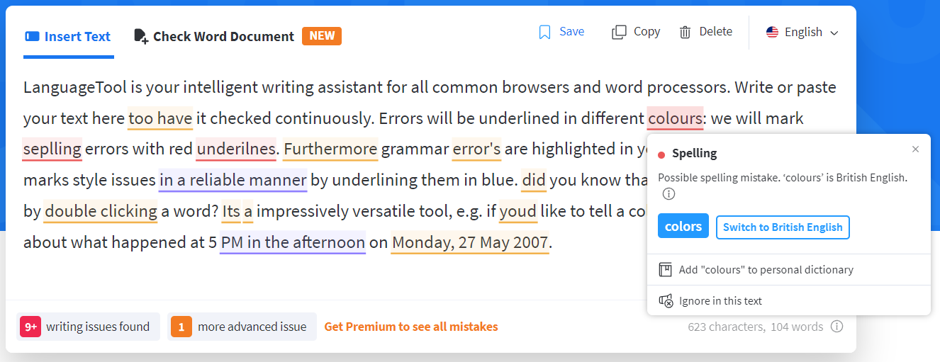 检查你的语法 LanguageTool.org 简单直接 查看相关主题: 佳软 非英语母语的人写出来的英文总会有一些拼写错误、时态问题、忘了或用错 in to of 等副词…… 这样的小问题。LanguageTool.org 是一个很好的解决方案。除了直接使用Web端,LanguageTool.org还提供很多插件,比如:Chrome, Word, Thunderbird... 评论