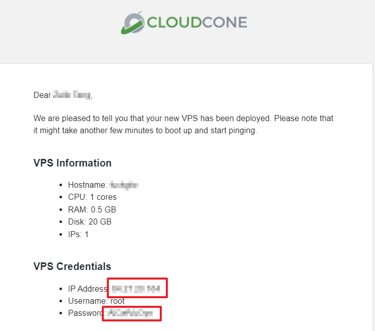 邮件中的 IP Address 就是 SSH 登录的 IP 地址。端口如果没写,那就是 22,如果是特殊端口一定会告诉你的。Username 一般是 root,如果是特殊的也会告诉你。Password 当然就是登录密码了。