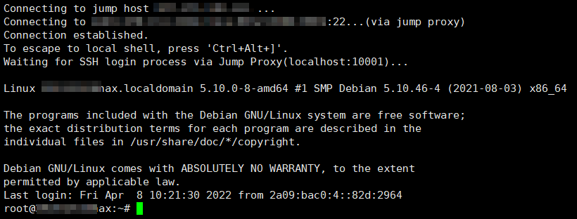 其实整个操作相当于,先连接跳板VPS,然后在命令行ssh登录目标VPS。你可以利用多个跳板建立跳板链。