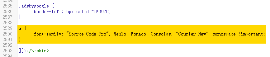 Blogger修改模板文件 将非标题的超链接的字体 改为代码字体 方便打印 后识别