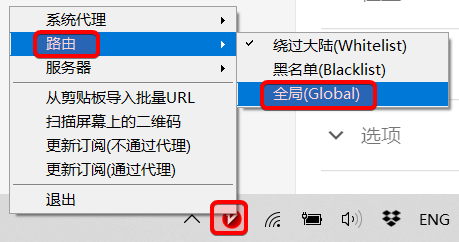 右键右下角的v2rayN图标,菜单选择 路由 - 全局