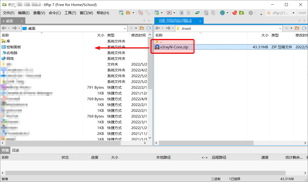 sz v2rayN-Core.zip取决于本地与VPS之间的速度,可能需要不少时间。
