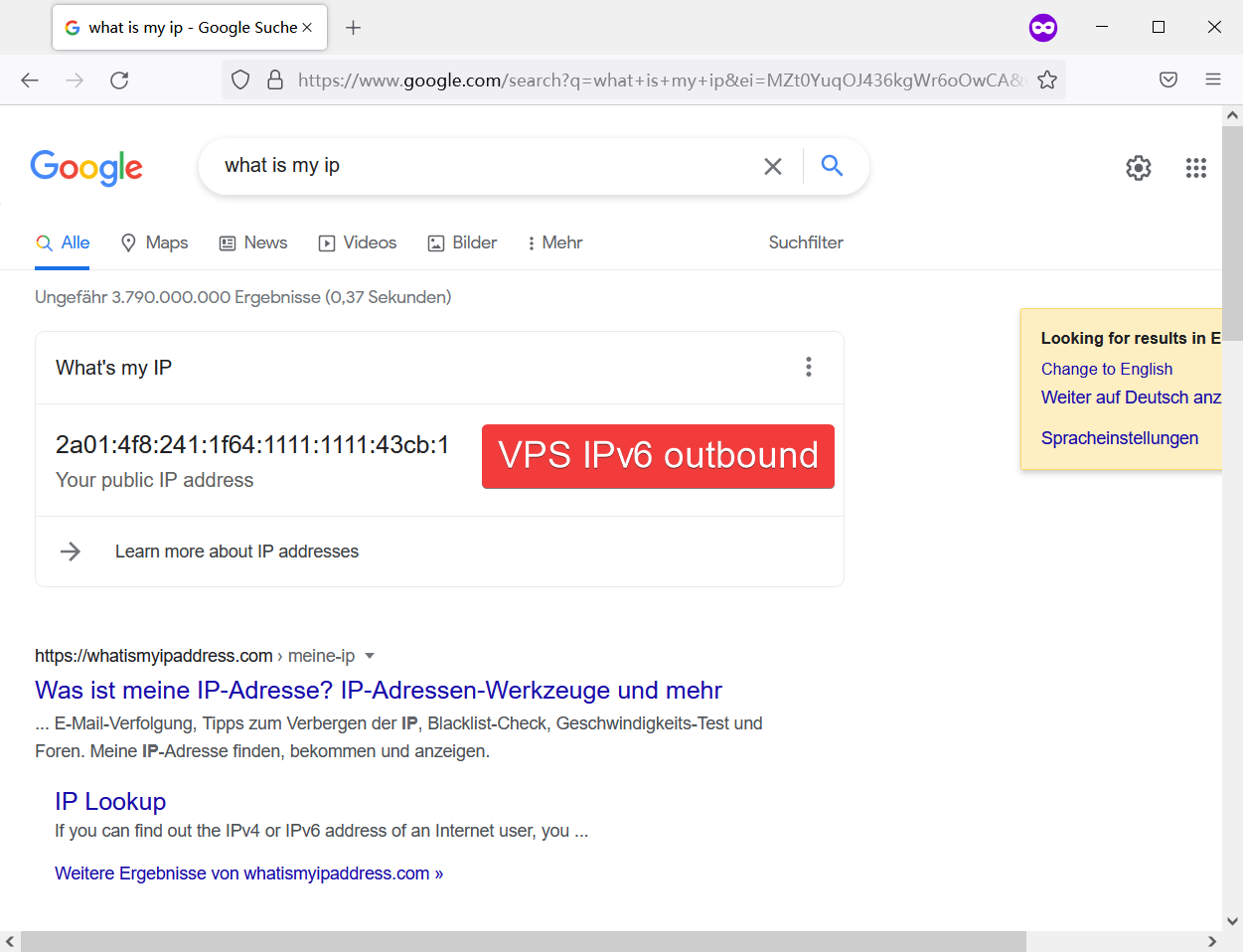 通过修改config.json来指定走IPv4或IPv6访问Google, 效果如下: