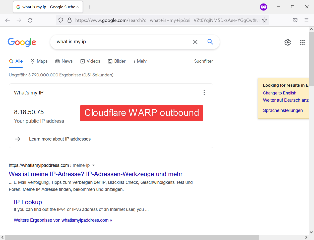 访问Google的IP地址变为Cloudflare WARP的出口.