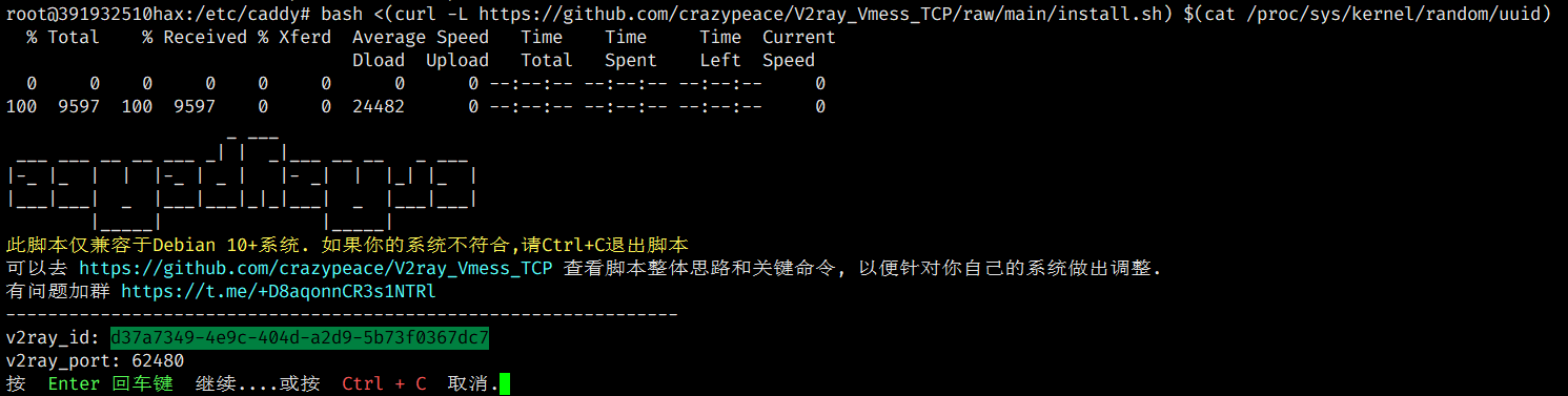 bash <(curl -L https://github.com/crazypeace/V2ray_Vmess_TCP/raw/main/install.sh) 6be678e3-8dc7-4ac1-a4de-c8bf9e3a6854