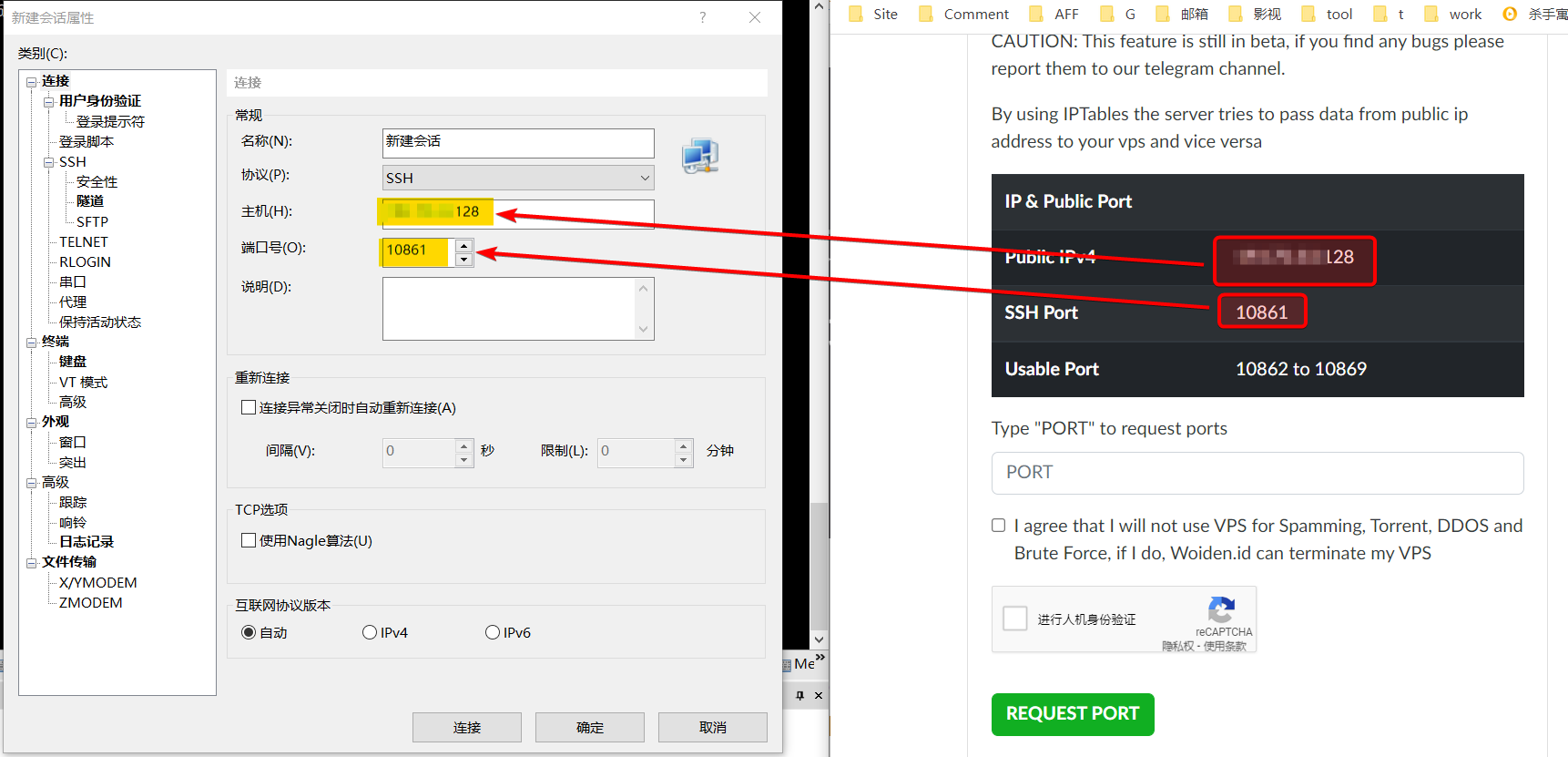 用Hax的免费V2Ray梯子 SSH登录Woiden EU-8 VPS共享IPv4上的公开端口