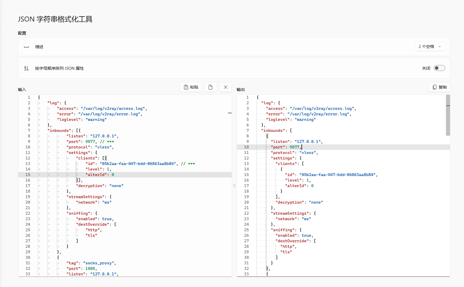 人眼实际阅读时,当然还是带注释的格式比较方便阅读。v2ray的配置文件就是带注释规则的json格式。