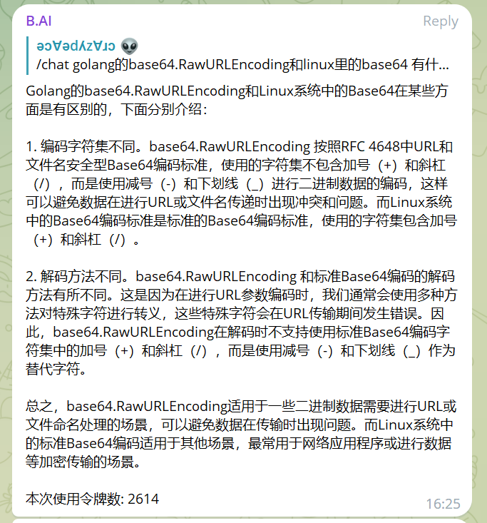 1. 编码字符集不同。base64.RawURLEncoding 按照RFC 4648中URL和文件名安全型Base64编码标准,使用的字符集不包含加号(+)和斜杠(/),而是使用减号(-)和下划线(_)进行二进制数据的编码,这样可以避免数据在进行URL或文件名传递时出现冲突和问题。而Linux系统中的Base64编码标准是标准的Base64编码标准,使用的字符集包含加号(+)和斜杠(/)。