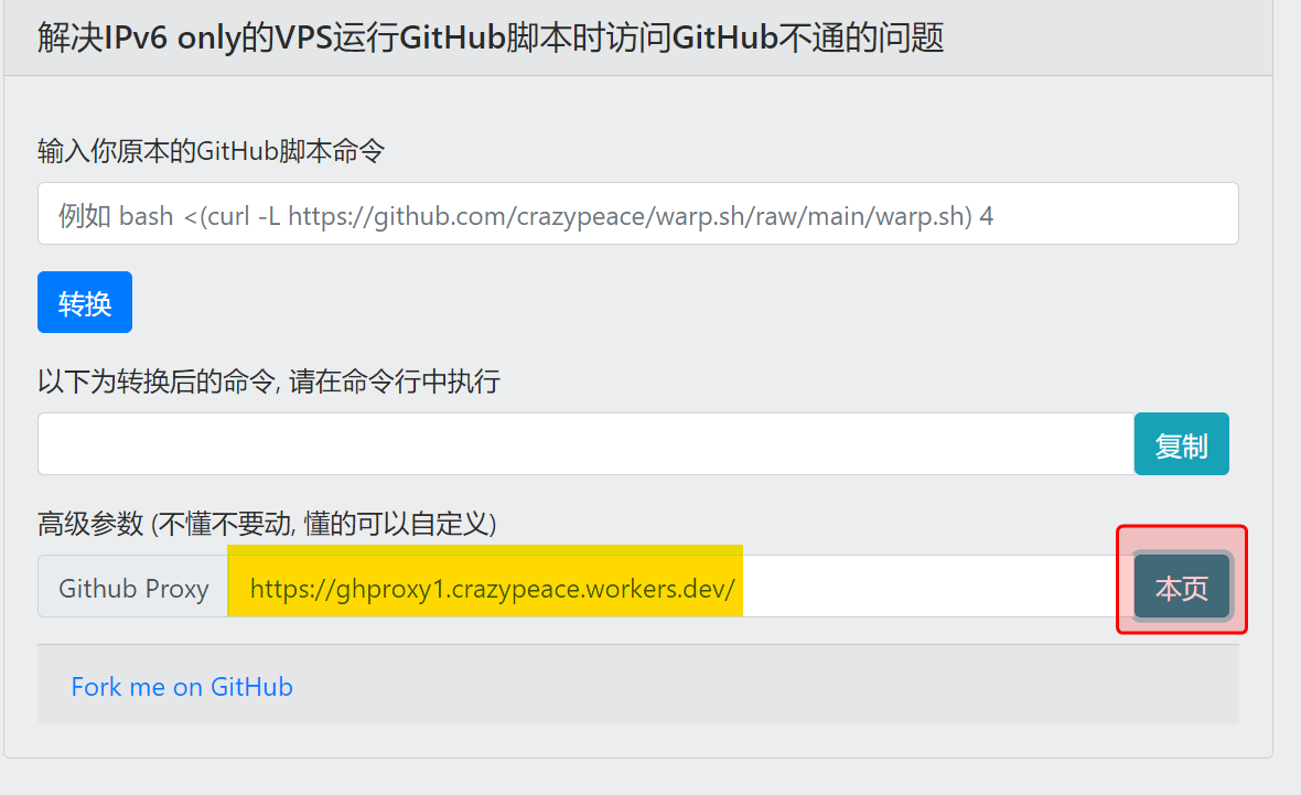 把 GitHub Proxy 一栏, 改为你刚刚搭的 worker 的地址填进去. 想偷懒就点"本页"按钮.