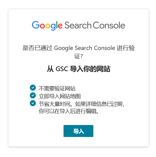 可以通过从GSC (Google Search Console) 导入, 这也是我使用的方式, 一路都很顺利, 推荐!