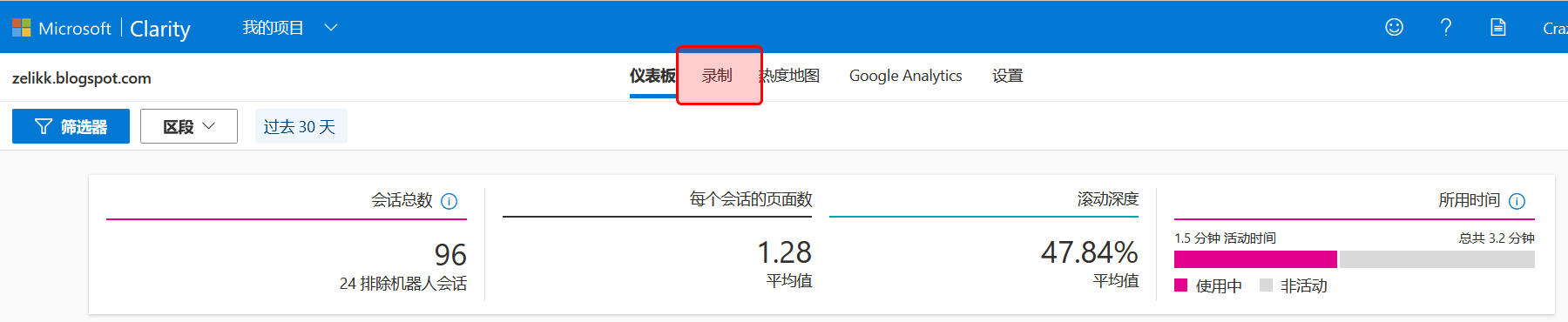 Microsoft Clarity 分析网站在用户使用中的表现状况