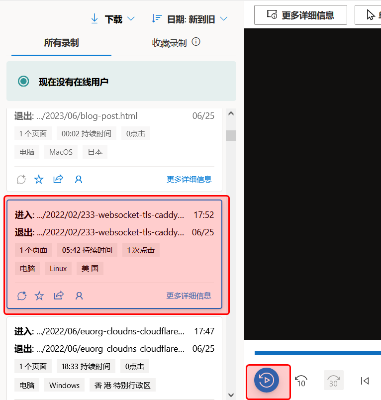 可以用 Microsoft Clarity 录制并回放用户在网站上的行为.