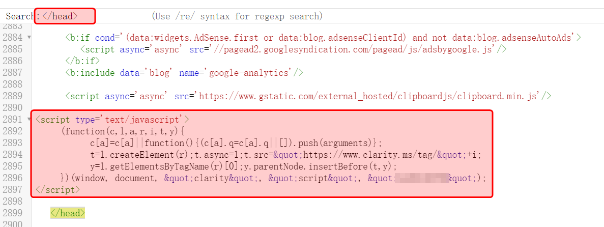 Ctrl+F 搜索 </head> 在</head>之前添加复制下来的代码.