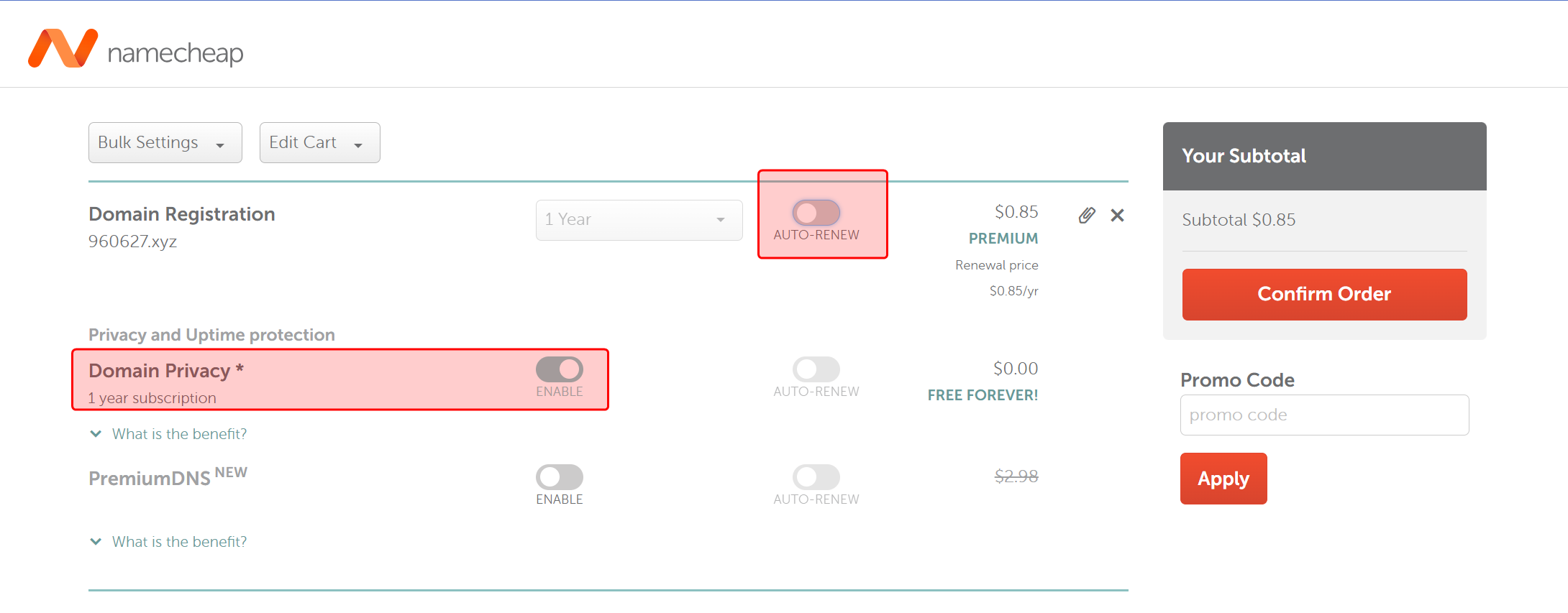 6位数字.xyz $0.85每年 namecheap.com