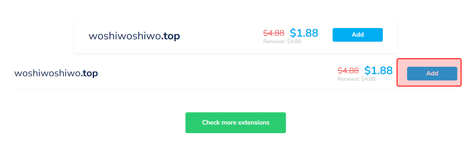 同样的 .xyz .top 域名, 它的价格比 上面这两位贵一点点.