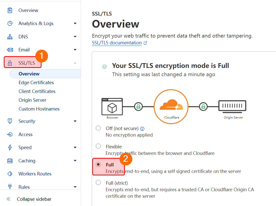 同时,在你的Cloudflare的域名列表页面,你的域名下面会有一个对勾. 点击域名进入设置.