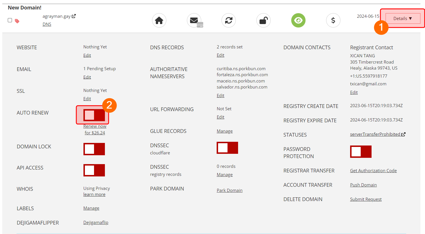 申请 免费.gay域名 porkbun.com 添加Cloudflare域名解析DNS