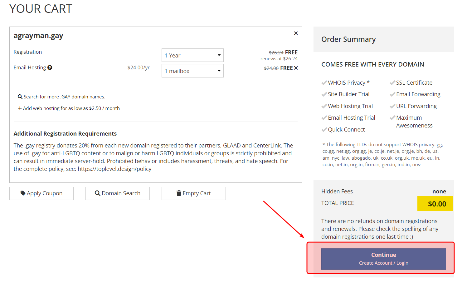 那么来 porkbun.com 申请免费的 .gay 域名吧
