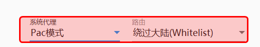在v2rayN窗口的状态栏, 选择 PAC模式 和 绕过大陆.