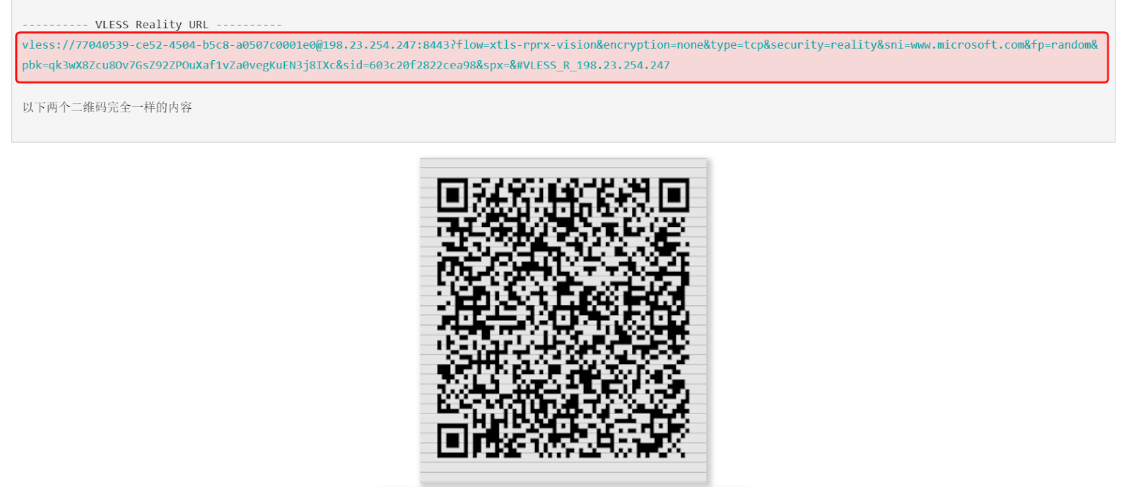 安装完成后,会出现vless://链接和二维码。