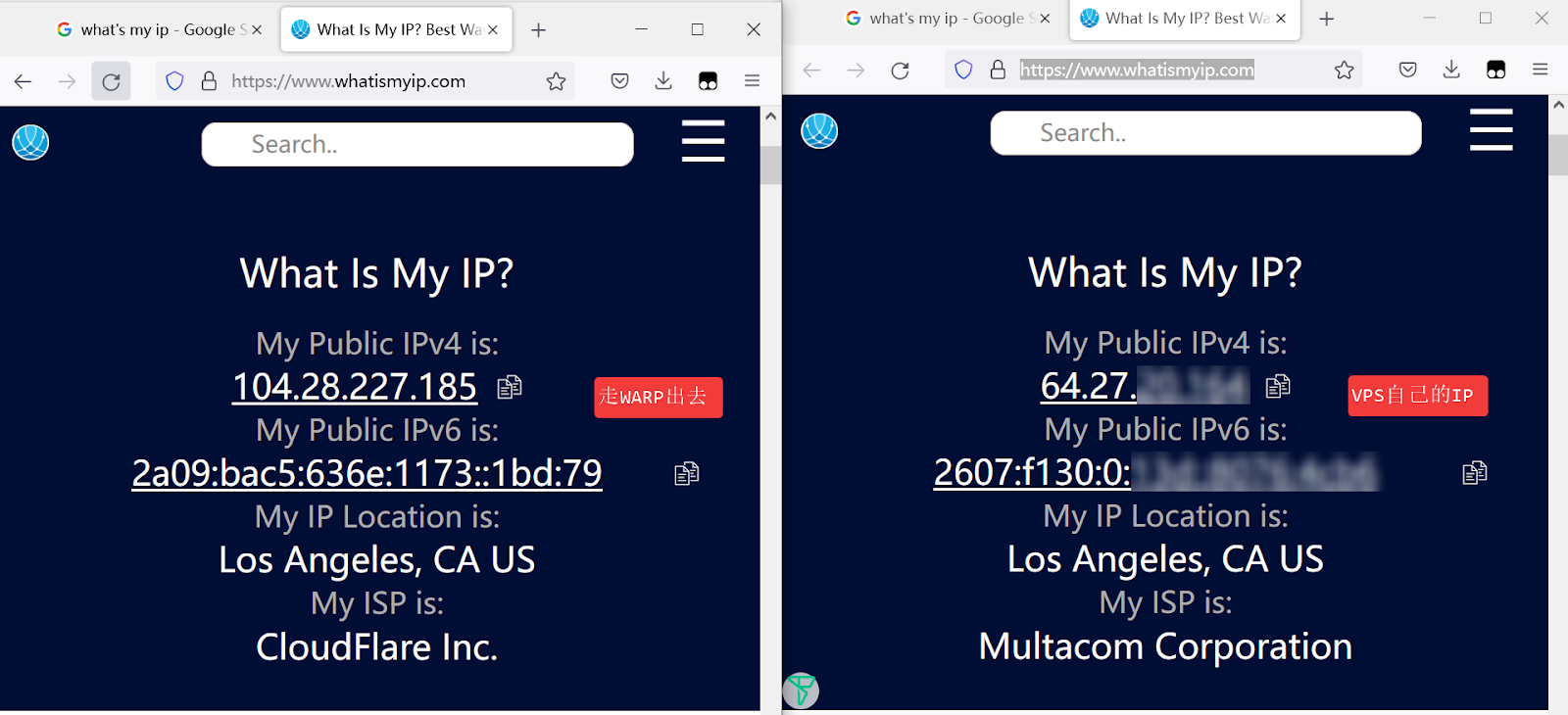 将v2rayN设置为全局, 使用不同的节点, 访问测IP的网站.