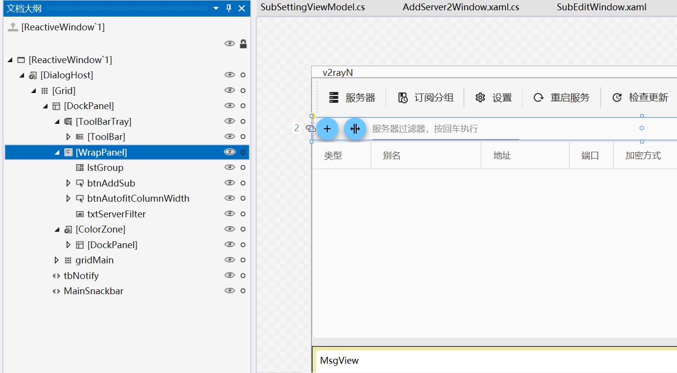 既然确定了 添加的按钮 和 调整栏目宽度的按钮, 那么前面的 lstGroup 应该就是显示分组订阅按钮的控件了. 以我粗浅的编程基础, 应该是作为容器, 在里面再添加一些分组订阅对应的按钮.