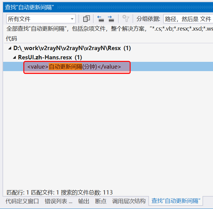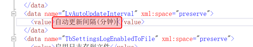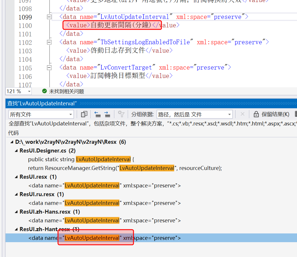 Ctrl + Shift + F 在项目中搜索关键字 LvAutoUpdateInterval可以修改其它语言的资源文本. 比如, 繁体中文的文本资源.我这里就避免翻译问题, 简单粗暴都修改为 xxxxxxxxx (hour)