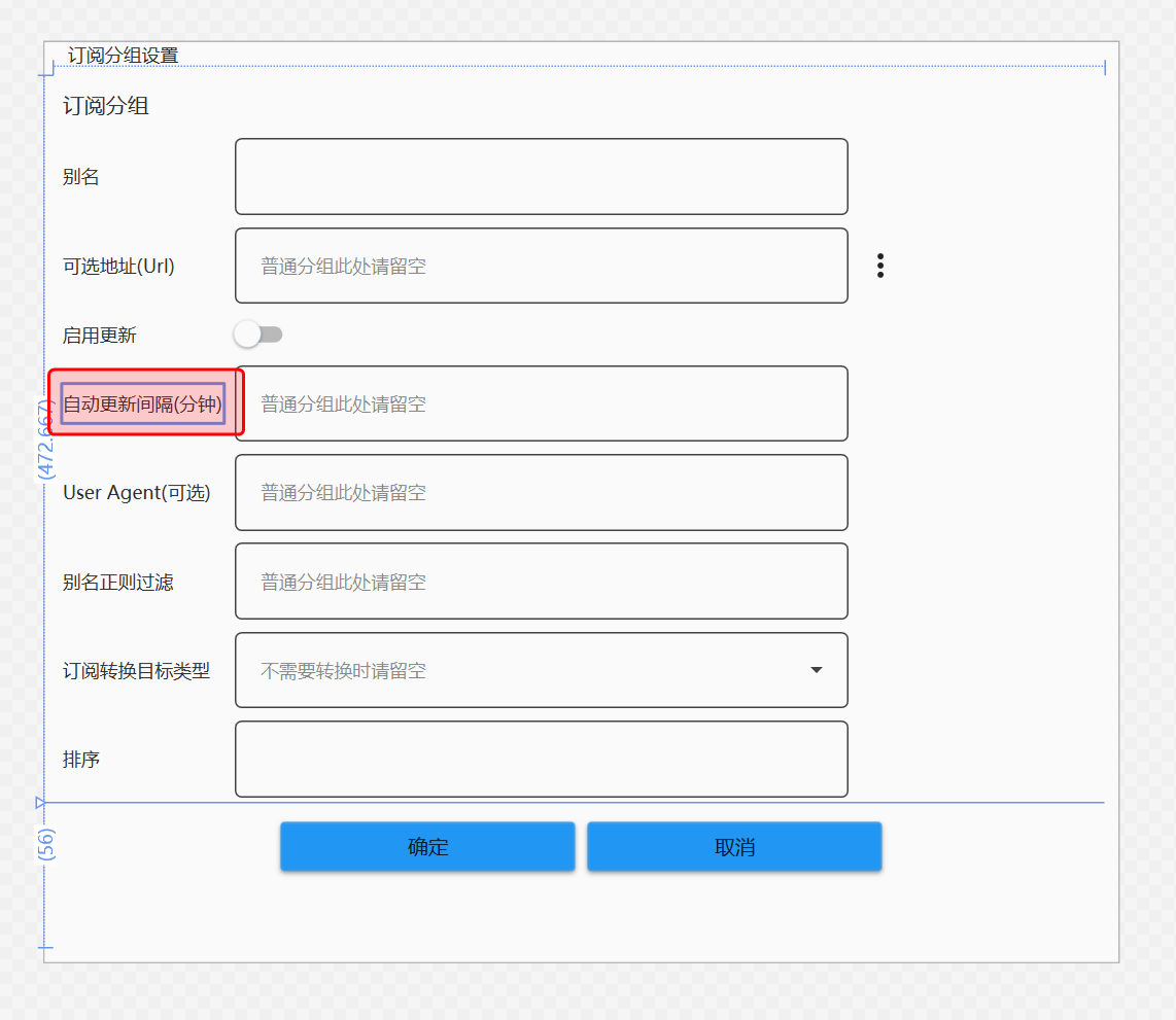 可以找到在 添加订阅分组窗口 和 订阅分组管理窗口 的22段代码.粗浅的理解, 就是把界面元素的数据 连接/映射/绑定 某个数据结构的值/变量. 那么 autoUpdateInterval 就是数据结构的变量名了. 推测在设置定时器的时候, 就应该是用的这个变量.