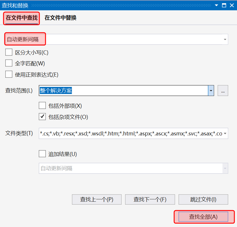 Ctrl + Shift + F 在项目中搜索关键字 txtAutoUpdateInterval