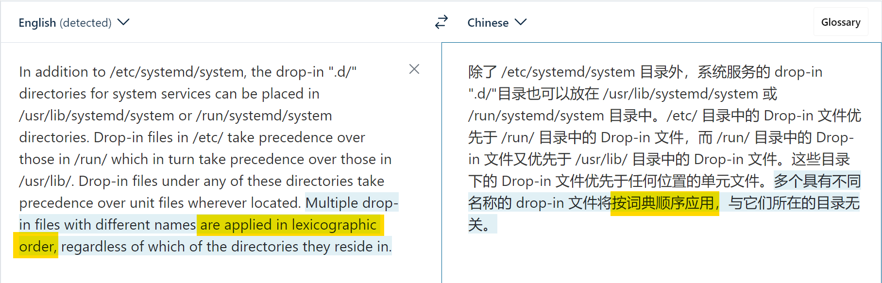注意到, "多个具有不同名称的 drop-in 文件将按词典顺序应用"