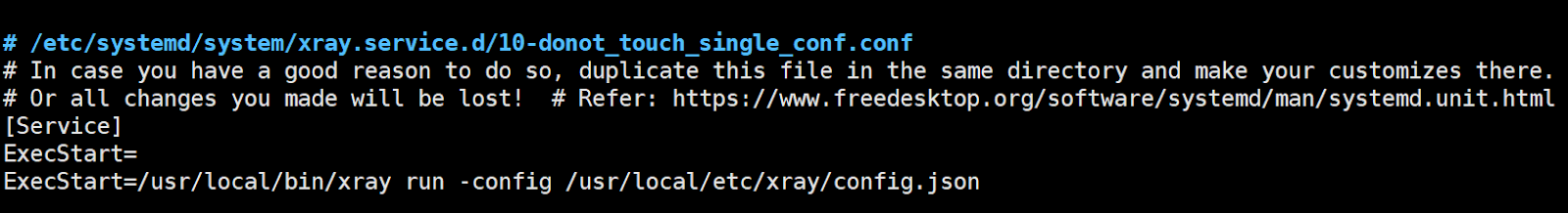 那么, 我应该先把 /etc/systemd/system/xray.service.d/10-donot_touch_single_conf.conf 复制一下, 新文件名就叫, 比如, customized.conf . 当然你可以取你自己喜欢的文件名.