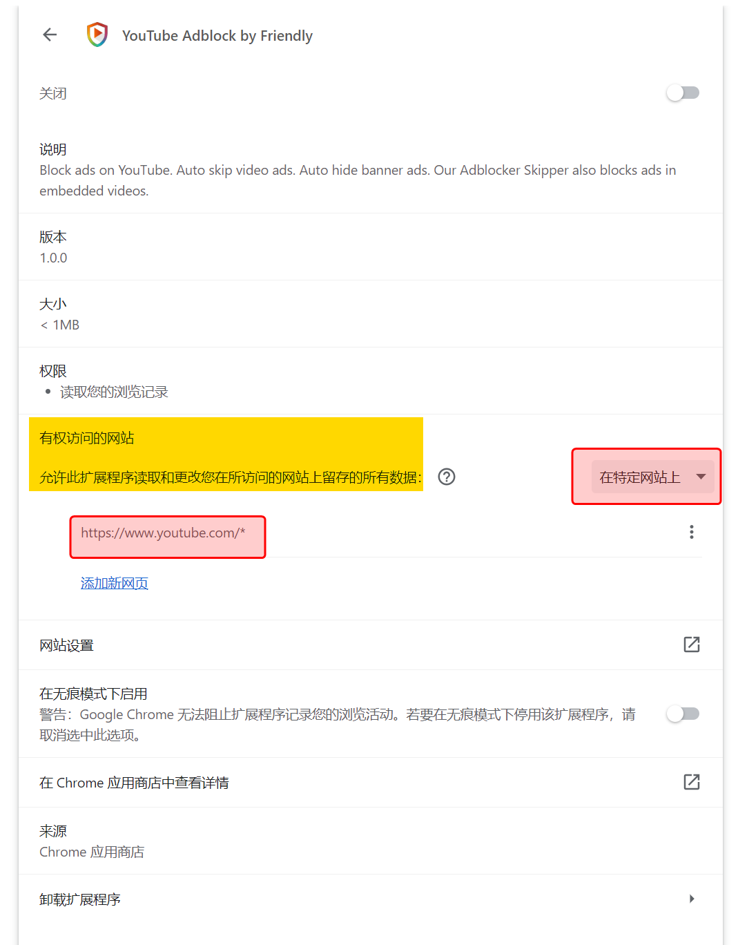 Chrome插件YouTube Adblock by Friendly去Youtube广告 2023-10-21
