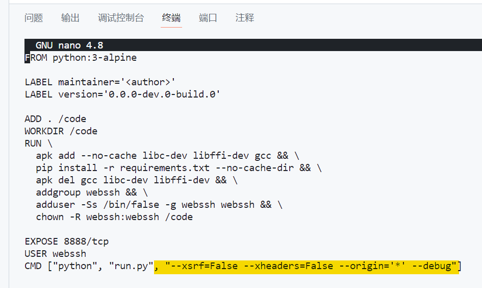 nano Dockerfile