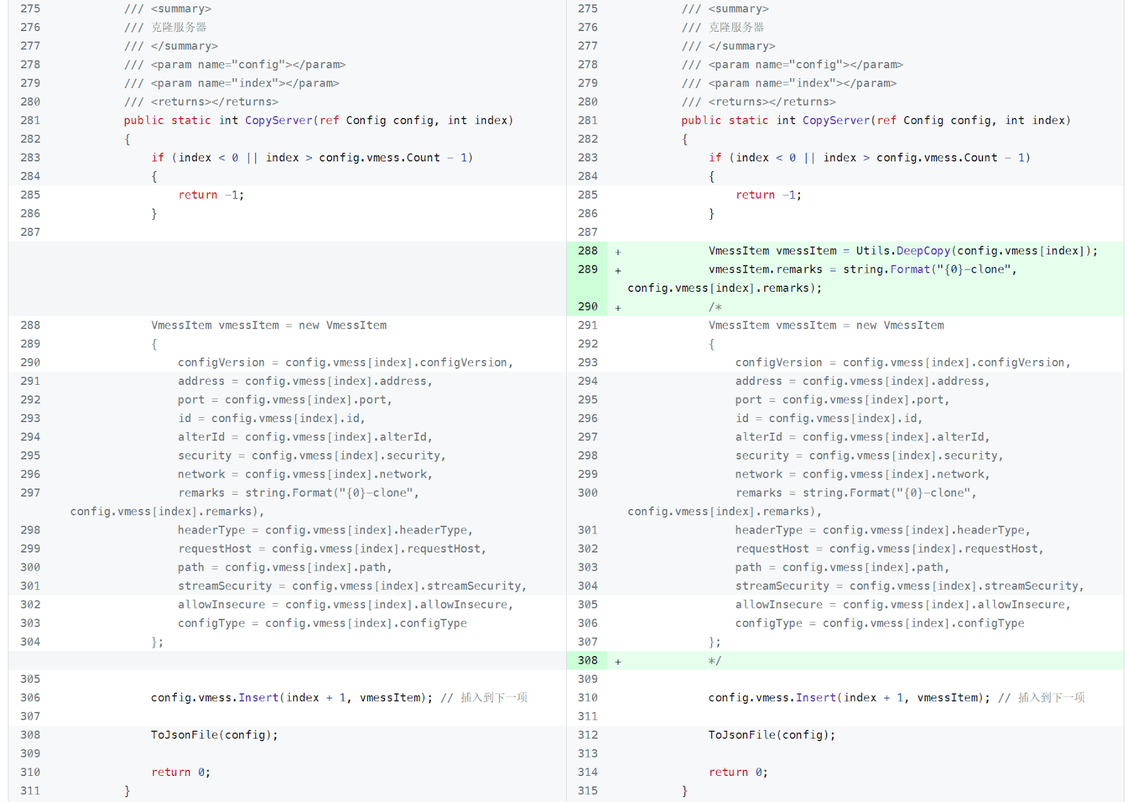 修改 ConfigHandler.CopyServer 函数, 照着最新的代码抄, 改为用基于 JSON 的深拷贝
