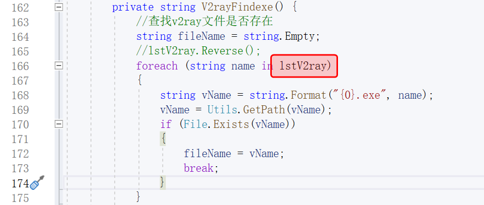 我们在 V2rayHandler.LoadV2ray 函数中, 追进去 V2rayRestart 函数, 再进 V2rayStart 函数, 再进 V2rayFindexe 函数